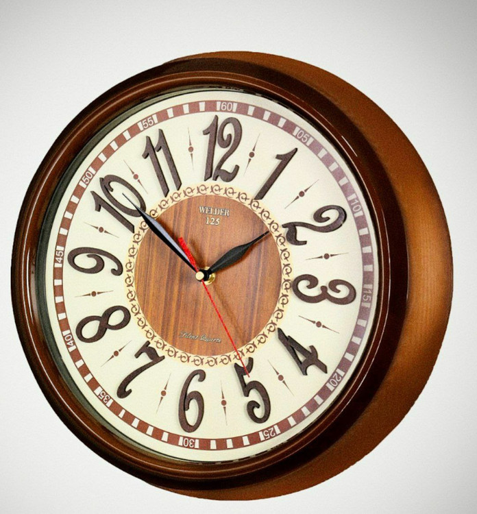 قطر ۳۶ سانتیمتر جنس بدنه از پلاستیک جنس صفحه از ام دی اف و اعداد برجسته چوب موتور آرامگرد بدون صدا دارای یک سال گارانتی موتور
