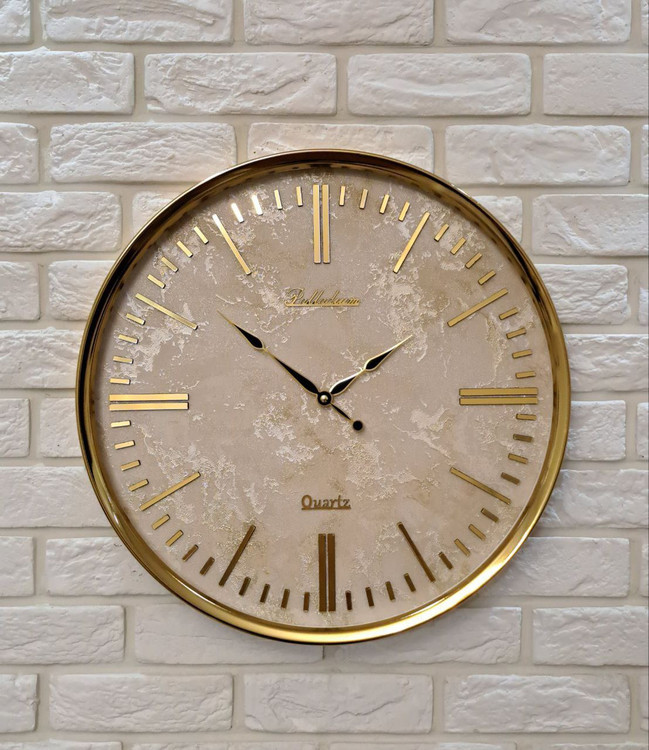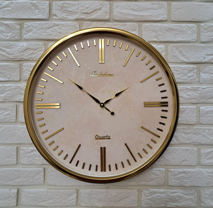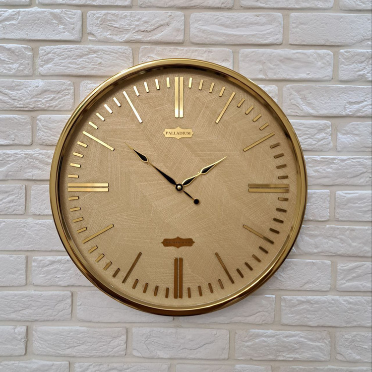 ساعت دیواری گرد فلزی پالادیوم ایکس ۲۰۰ گلد یا طلایی دارای بدنه فلزی و اعداد مولتی موتور آرامگر بدون صدا و دارای یک سال ضمانت آبکاری شده قطر ۵۵ سانتیمتر