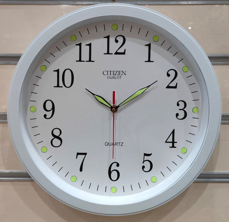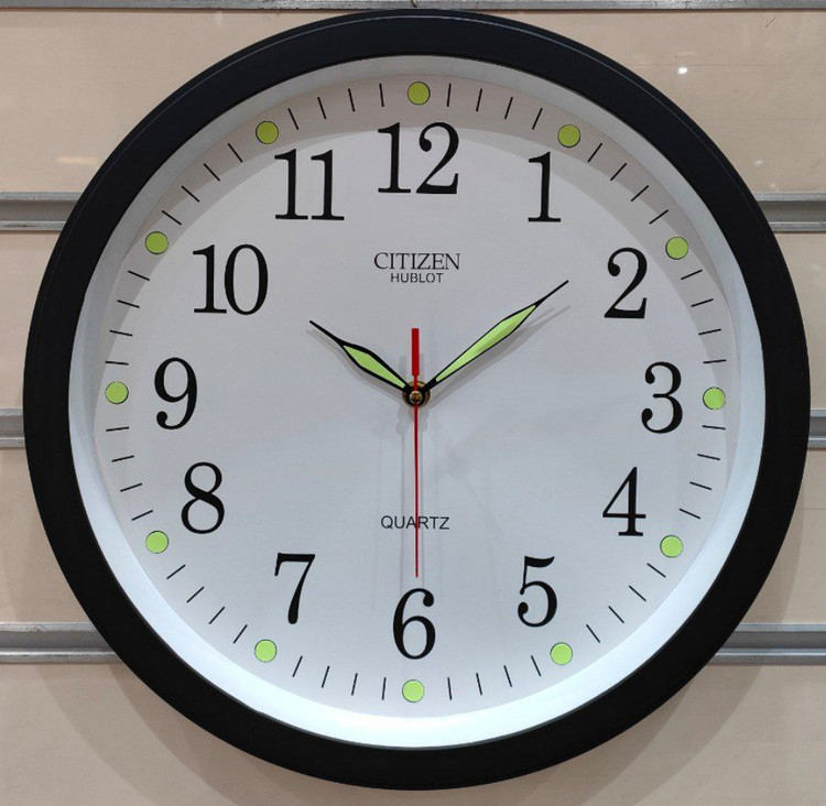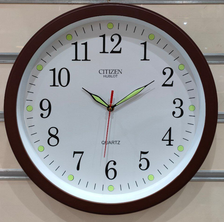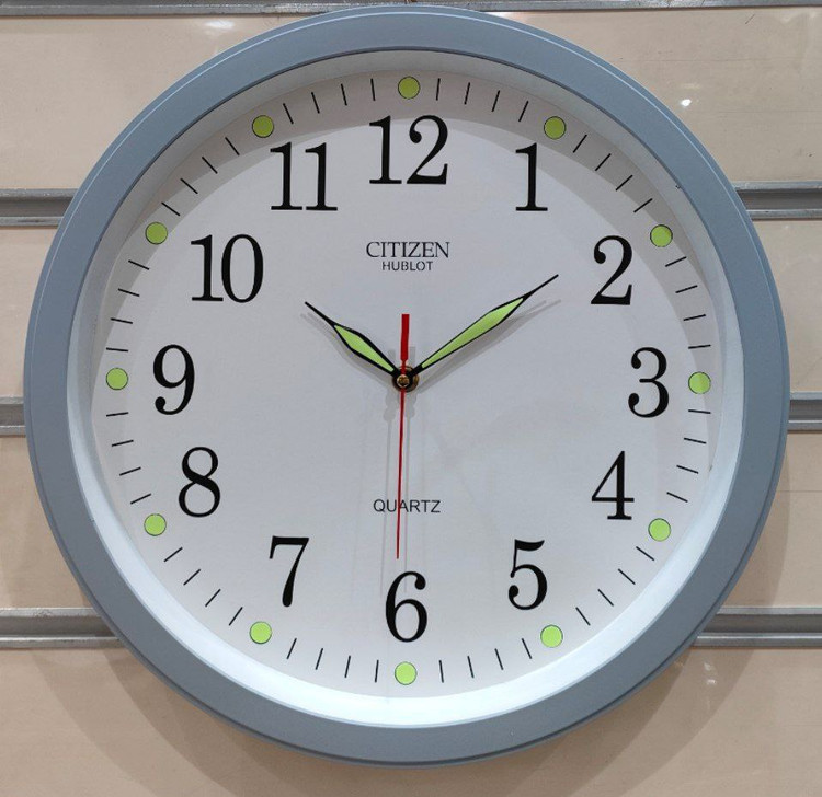 ساعت دیواری سیتیزن هابلوت شب نما دارای موتور آرامگر بدون صدا قطر ۸ سانتیمتر در ۴ رنگ قهوهای طوسی سفید و مشکی مناسب برای اتاق خواب و دفاتر و اداره جات