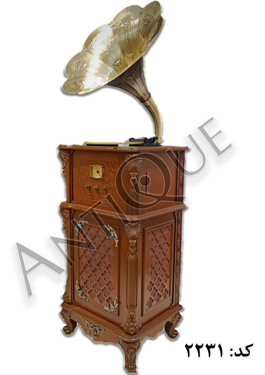 گرامافون مبله مدل 2231 آنتیک چهار کاره شیپور فلزی گیرنده رادیو دارای بلوتوث ریموت کنترل حافظه sdو usb