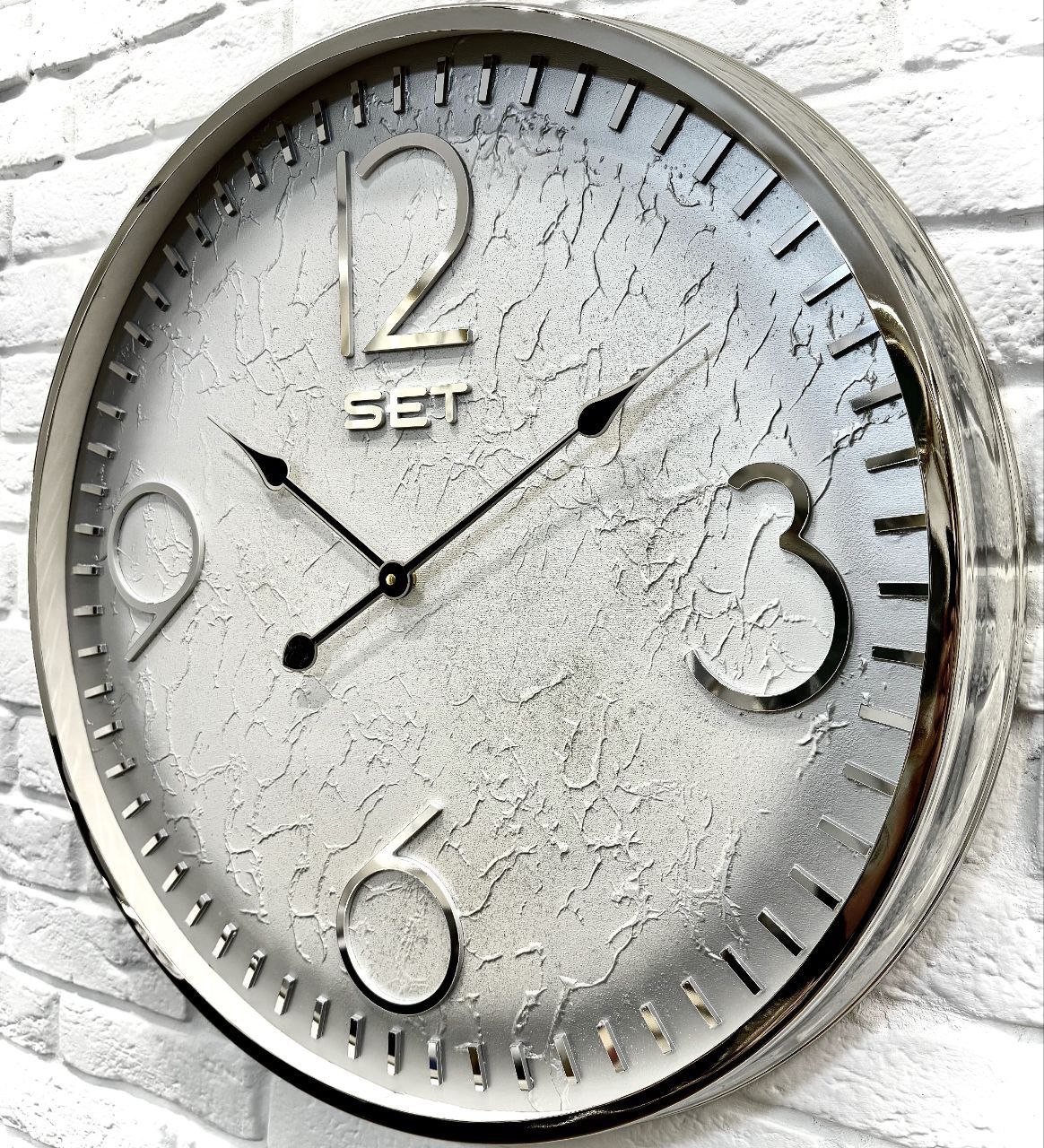ساعت دیواری ست کد 108 سیلور | آبکاری کروُم نقرهای - موتور تایوان - قطر 65 سانتیمتر