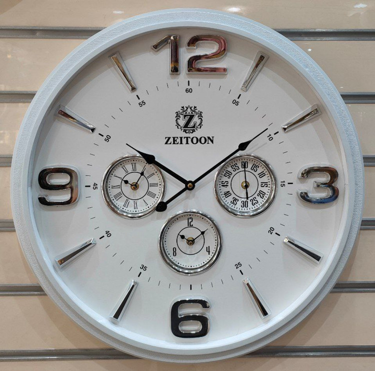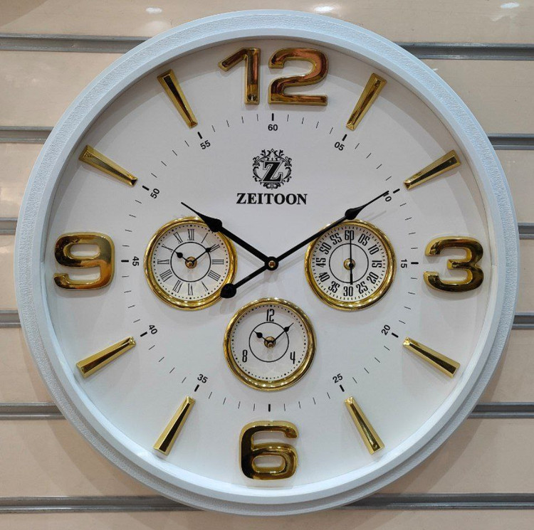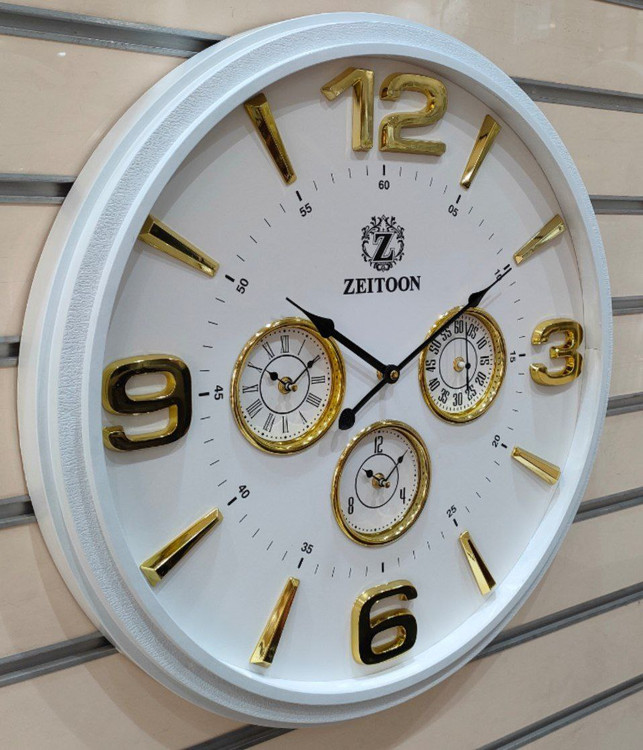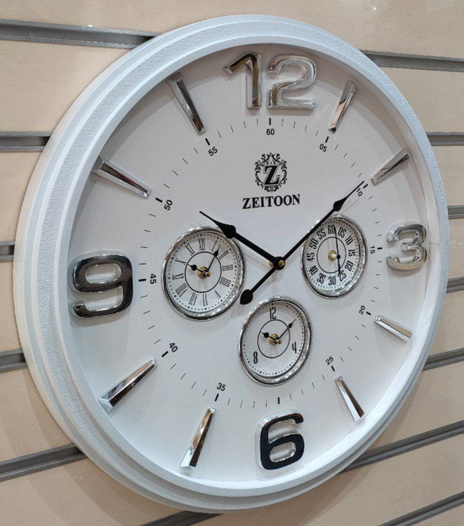 ساعت دیواری گرد زیتون چهار موتور مدل مروارید سفید